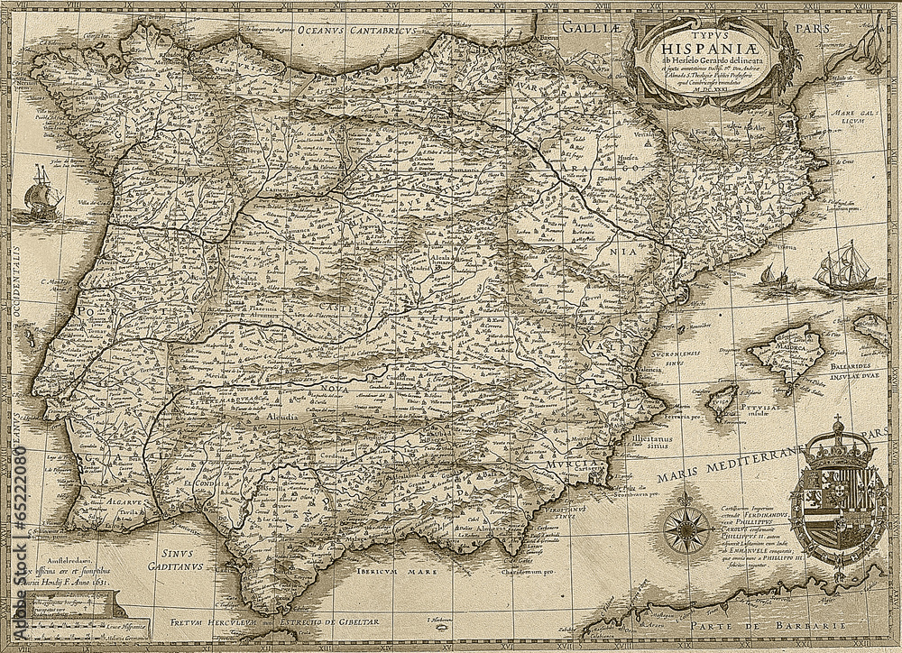 Fotografija Antique Spain and Portugal map in sepia tone