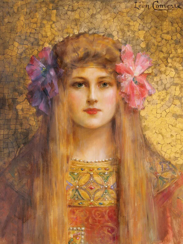 Stenska nalepka The Girl in Gold (Floral Portrait) - Léon François Comerre