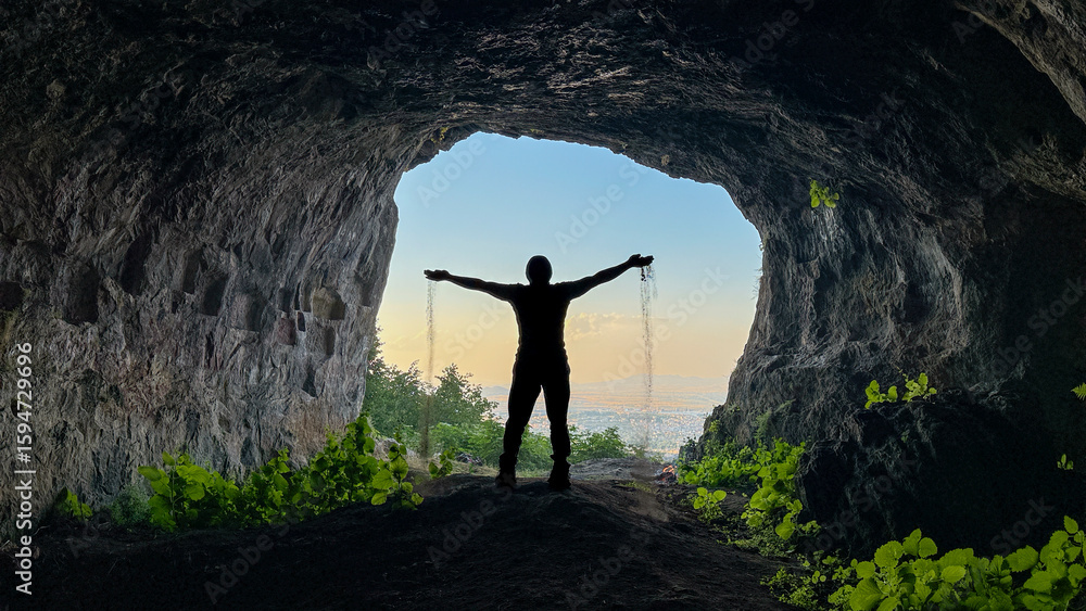 Slika na platnu Cave interior details, the moment when time stopped and the traveler who had an