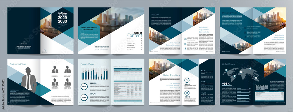 Slika na platnu Corporate business presentation guide brochure template, Annual report, 16 page minimalist flat geometric business brochure design template, A4 size