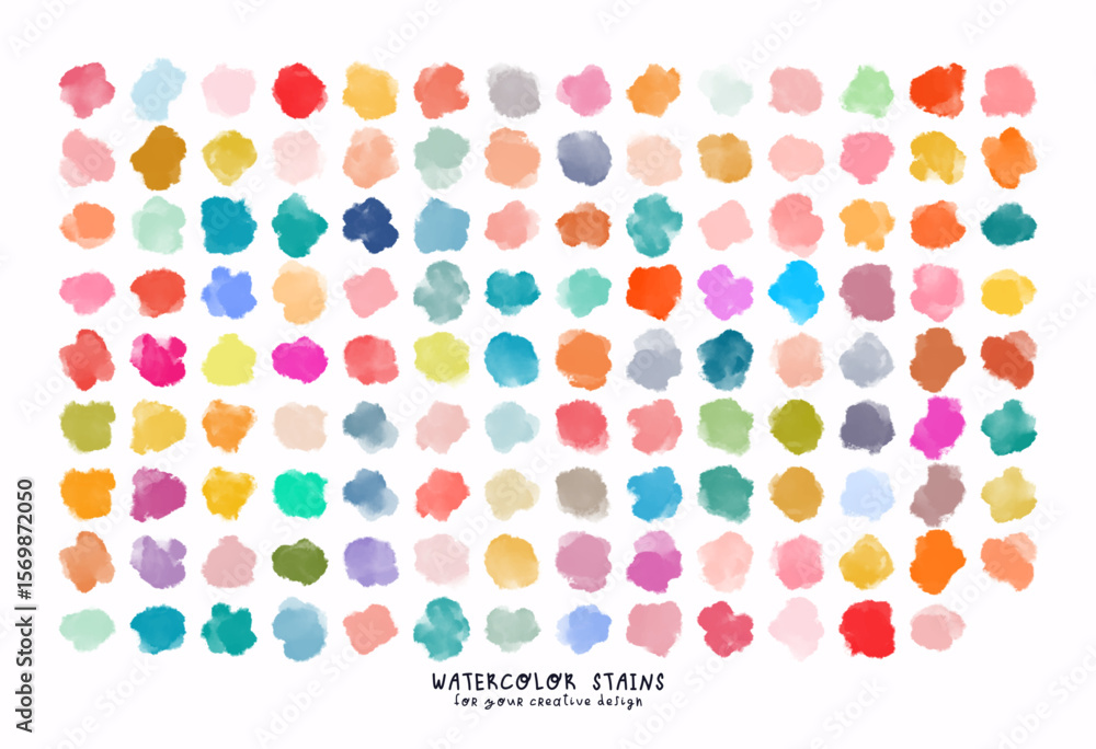 Fototapeta Set of colorful watercolor hand painted different shapes, stains, circles, blobs isolated on white background
