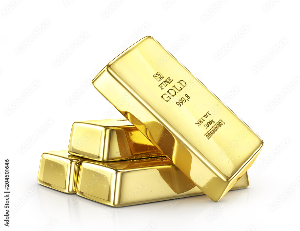 Fototapeta Gold ingot isolated on a white. 3d illustration