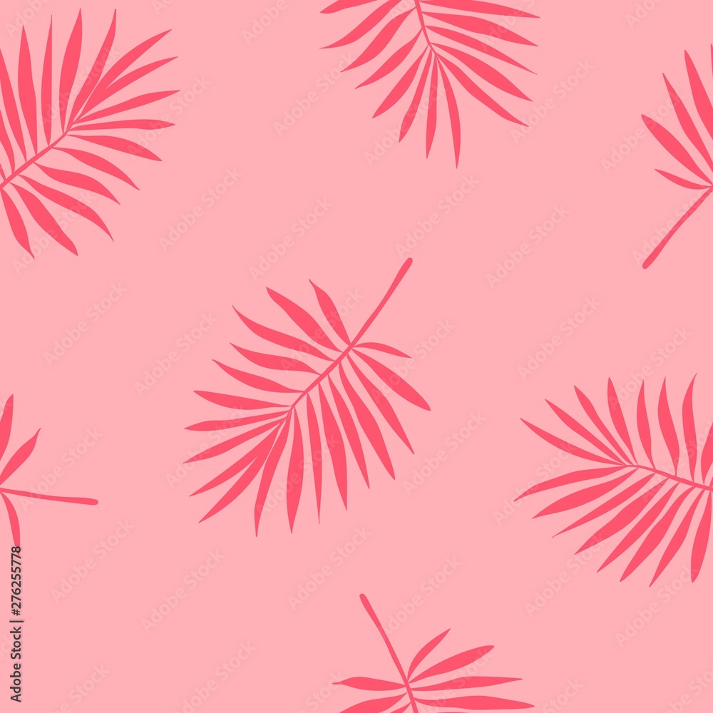 Fototapeta Tonal seamless repeat pattern in corals with a tossed palm leaf
