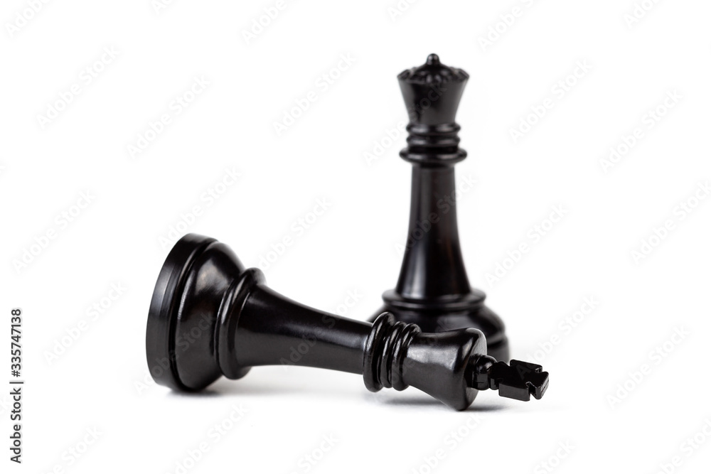 Fototapeta Chess pieces, death of a king, queen dominating the king standing above, piece laying on the ground below