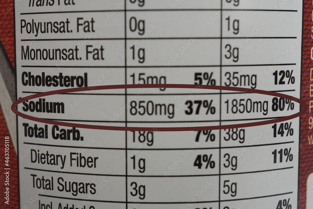 Fototapeta Nutrition label from a can of soup showing the high sodium content