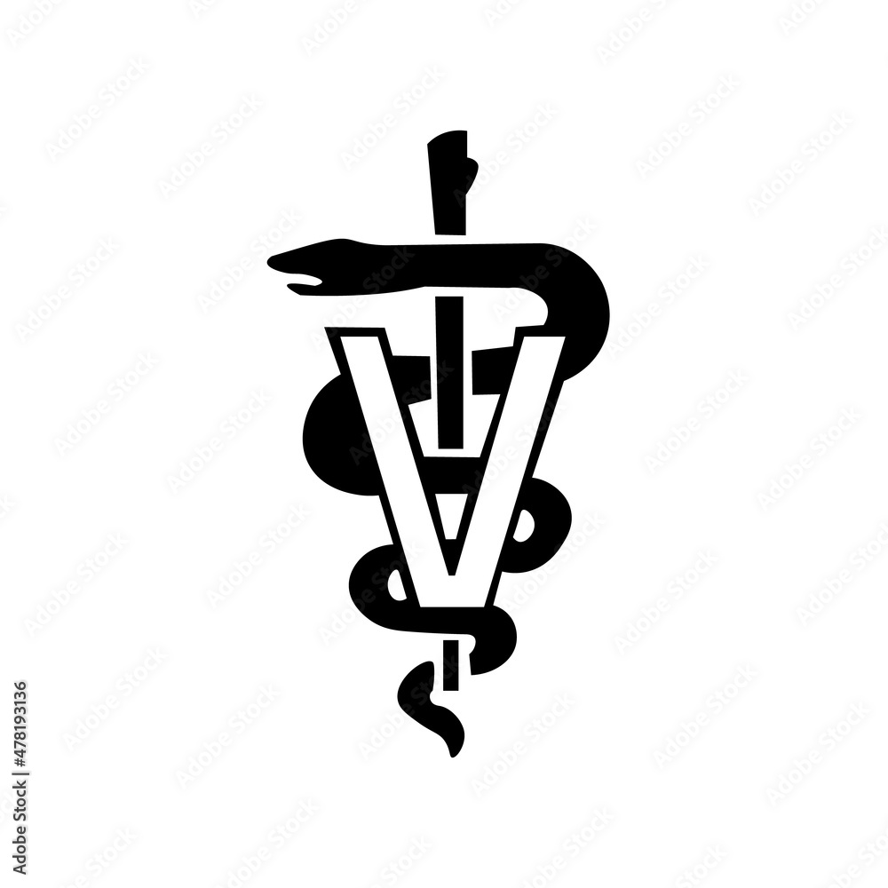 Fototapeta Veterinary caduceus symbol with snake and stick