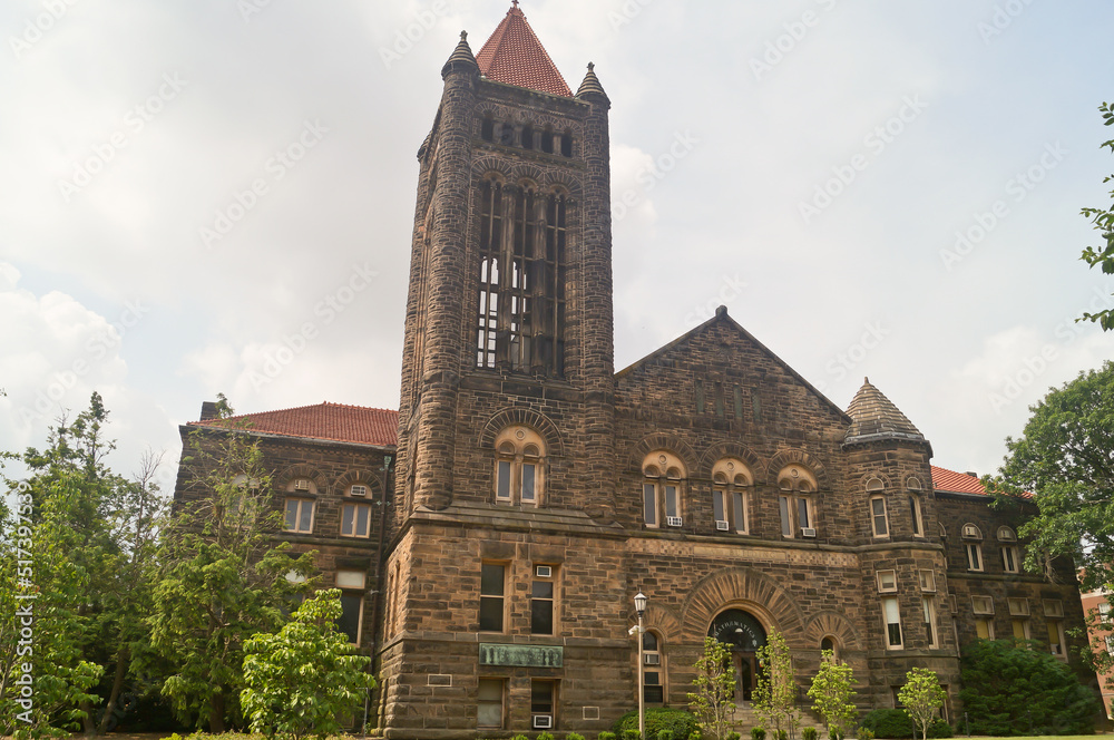 Fototapeta Champaign, Illinois / USA - June 13 2022: Beautiful Fountain with Plants and Flo
