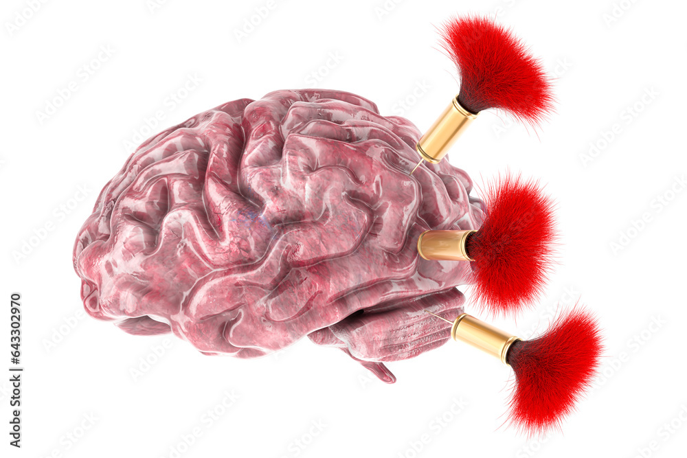 Fototapeta Human brain with tranquillizer darts, 3D rendering isolated on transparent backg