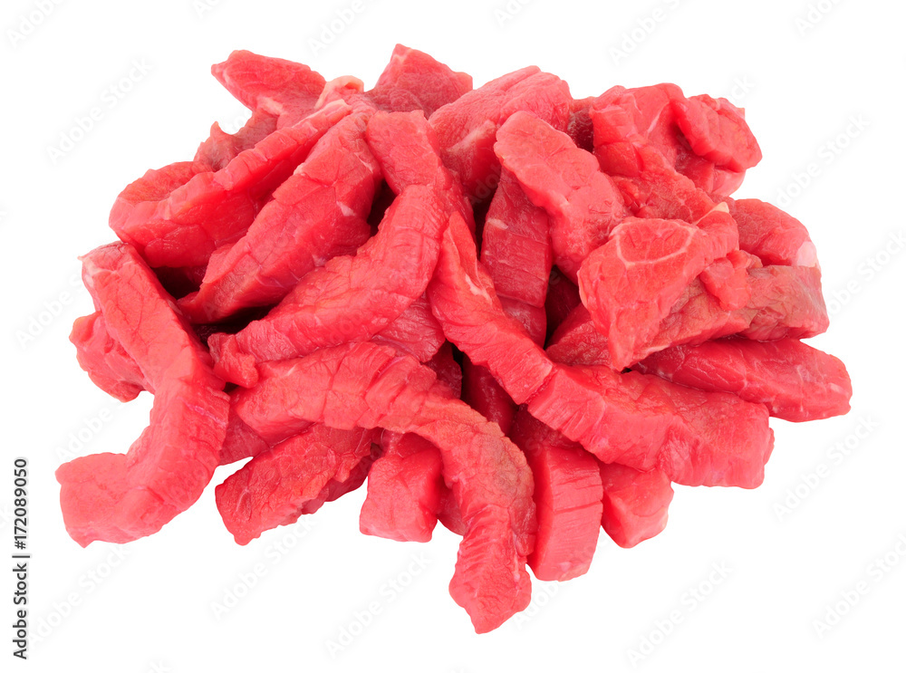 Slika na platnu Fresh raw stir fry beef strips isolated on a white background