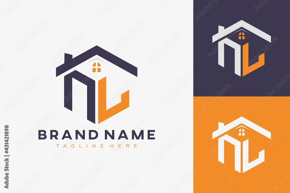 Fotografija hexagon NL house monogram logo for real estate, property, construction business identity