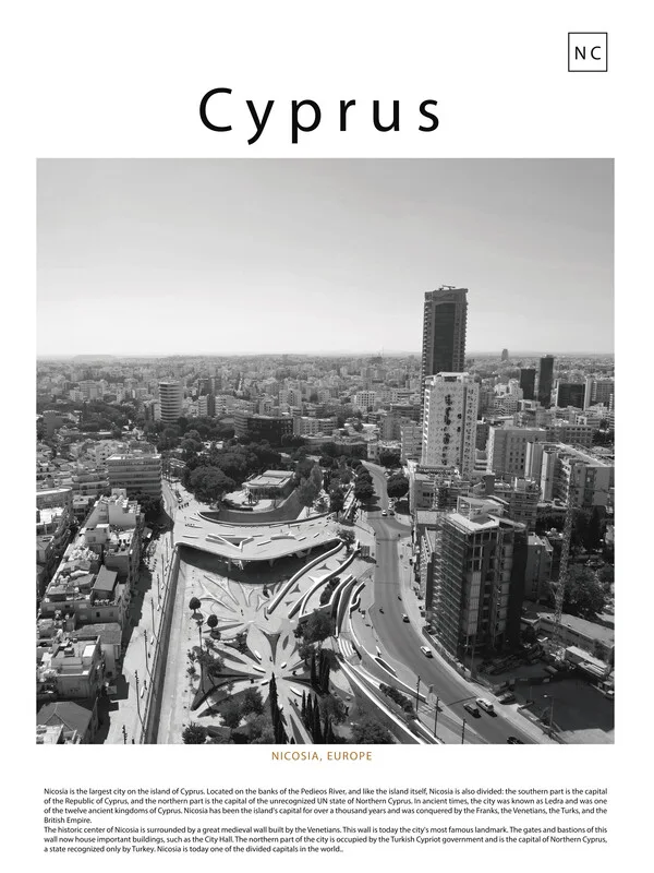 Poster Black and white poster of a cityscape of Nicosia, Cyprus