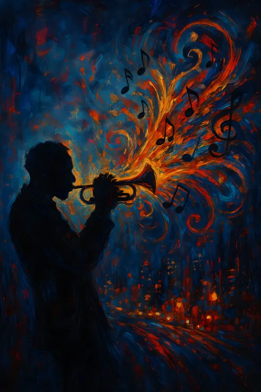 Poster Flame Music Trumpet – Passionate Jazz Art