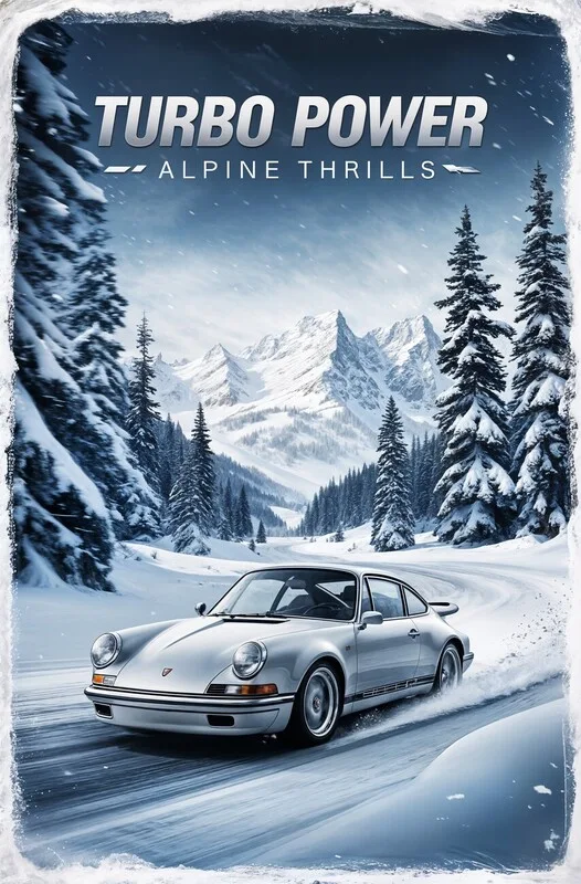 Stenska nalepka Porsche 930 Turbo Poster: Vintage Alpine Adventure