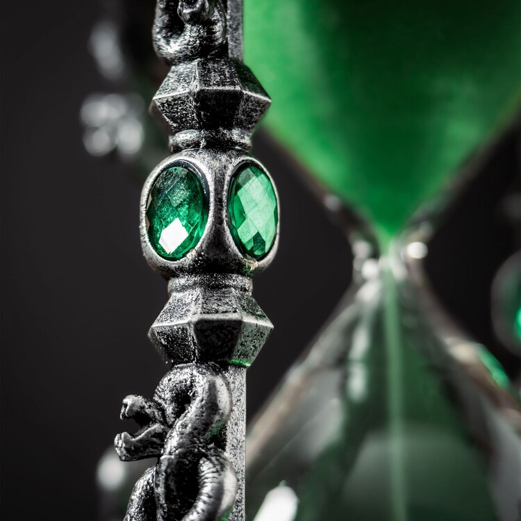 Pristna čarovnija Harryja PotterjaVstopitev skrivnostni svet magije in temnih sil, ki se nenehno spopadajo. Ta uradno licencirani peščeni časovnik z zapletenimi vzorci Jedcev smrti in kultnega temnega znamenja odlično odraža vzdušje temnih umetnosti. Je nepogrešljiv zbirateljski predmet, ki bo na vaši mizi ali polici pustil nezamenljiv vtis temne strani čarovniškega sveta.