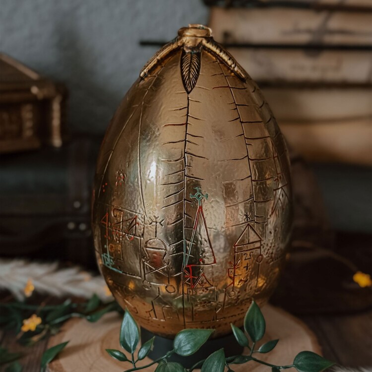 Luksuzna replika zlatega jajca iz filma Harry Potter in Ognjeni kelih je skrbno izdelana filmska replika. Dimenzije jajca so približno 24 x 12 x 12 cm.