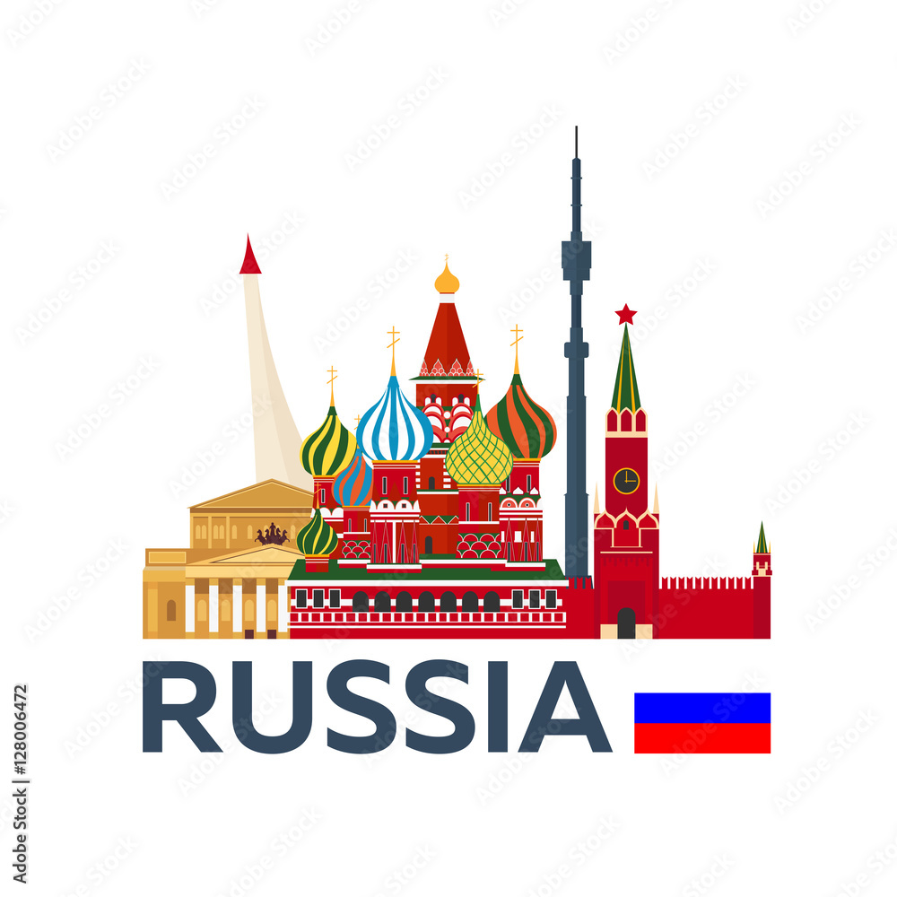 Stenska nalepka Travel to Russia, Moscow skyline. Kremlin. Vector illustration.