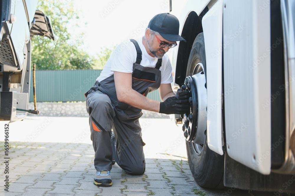 Stenska nalepka Caucasian Professional Truck Mechanic Rebuilding Heavy Duty Truck Diesel Engine