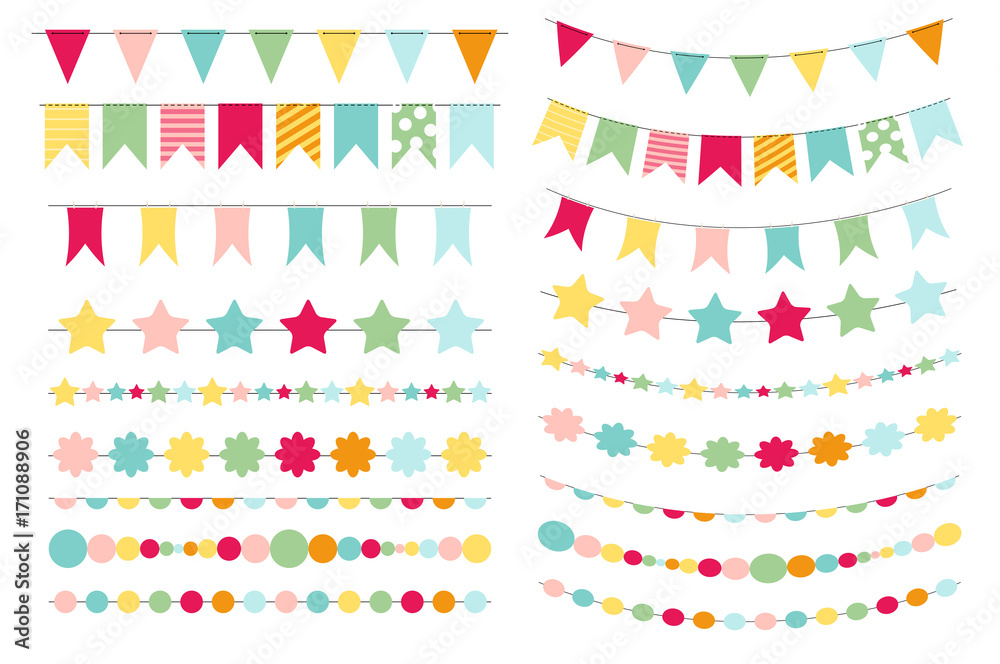 Stenska nalepka Party Flags, Buntings, Brushes for Creating a Party Invitation