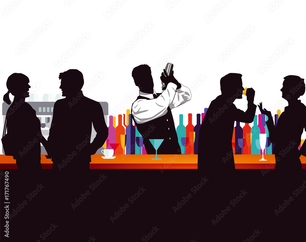 Stenska nalepka Bar mit barkeeper, cocktail mixen