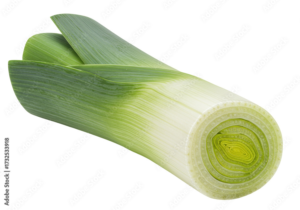 Stenska nalepka Fresh leek isolated on transparent background, vibrant green and white vegetable