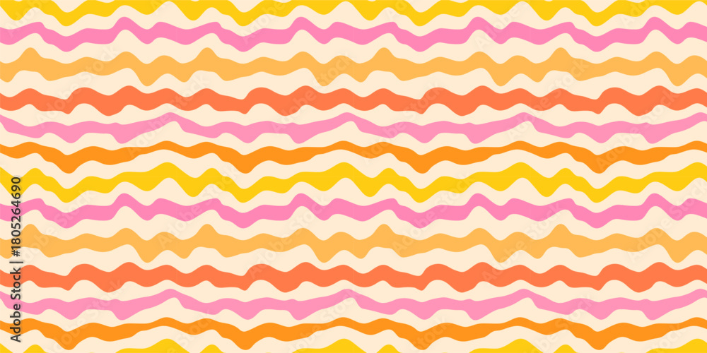 Stenska nalepka Yellow, orange and pink crazy warped stripes vector seamless pattern, boho summe