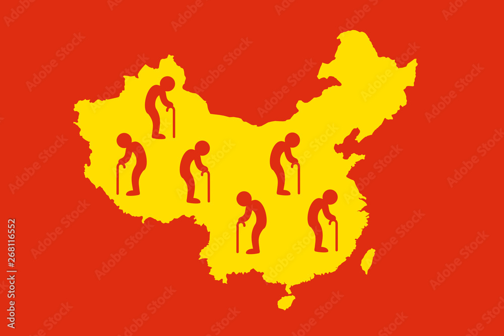 Stenska nalepka China as country of old people - population ageing / aging