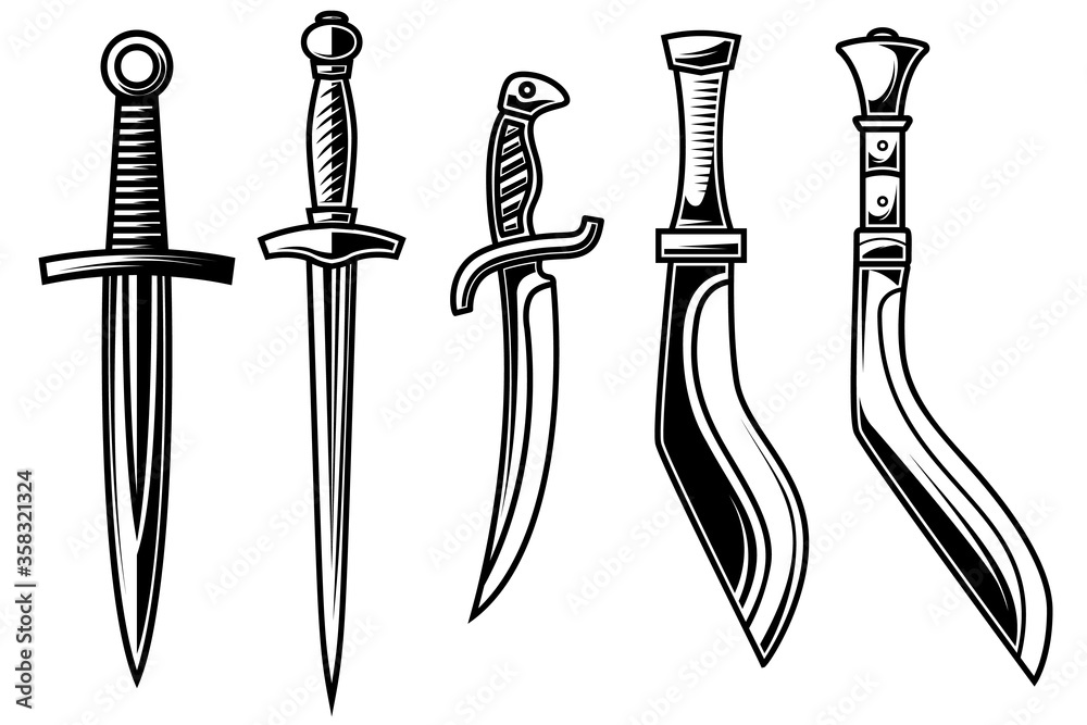 Stenska nalepka Set of illustration of daggers in engraving style