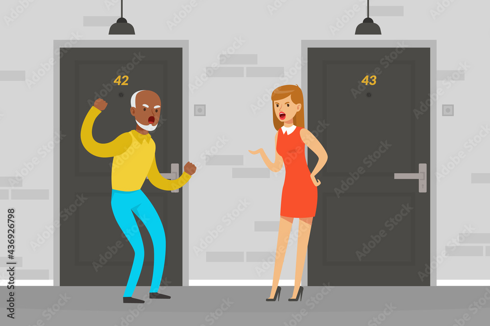 Fotografija onflict Between of Neighbours, Residents of House Quarreling and Fighting Vecto