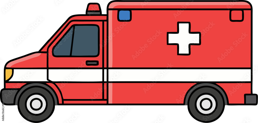 Slika na platnu Red Cartoon Ambulance Car Side View Vector Illustration