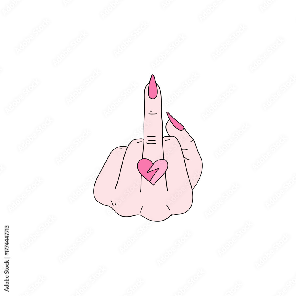 Fotografija Woman Hand Showing Middle Finger with Broken Heart Ring Clipart, Funny Anti Vale