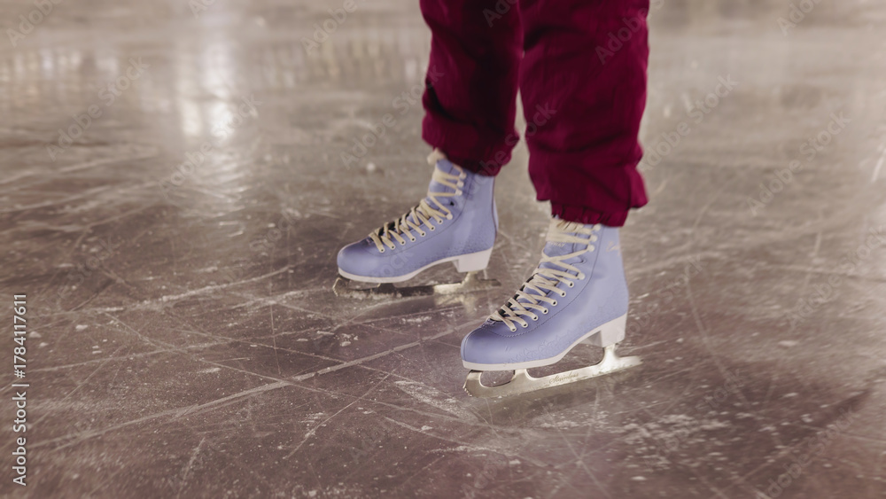 Fotografija Ice skating on the ice rink arena with people, skating rink surface, ice skating