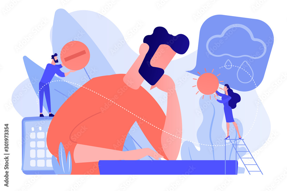 Fotografija Businessman feeling bad with depressive symptoms, tiny people