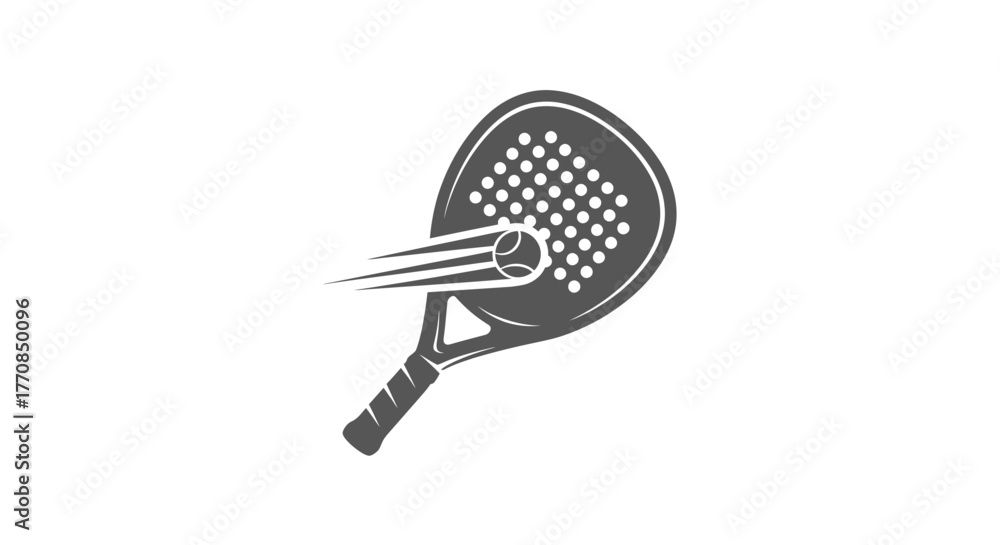 Slika na platnu Monochrome icon of a padel racket hitting a ball with speed lines, isolated on a white background