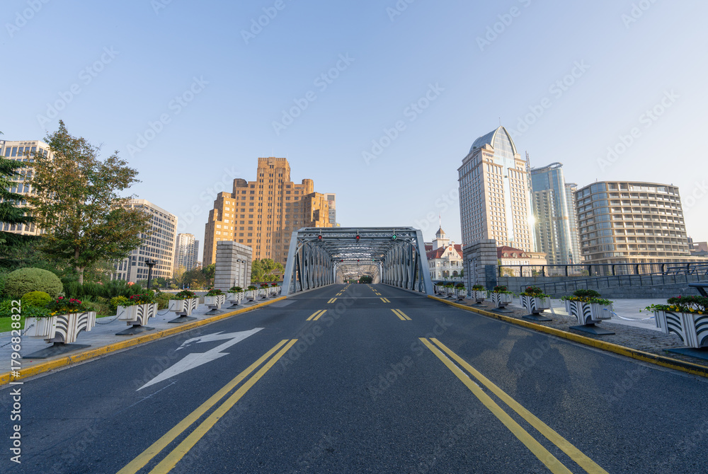 Slika na platnu The empty Waibaidu Bridge in Shanghai in the early morning