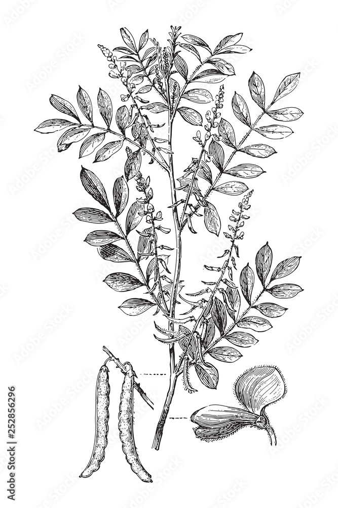 Slika na platnu True indigo (Indigofera tinctoria) / vintage illustration from Meyers Konversati