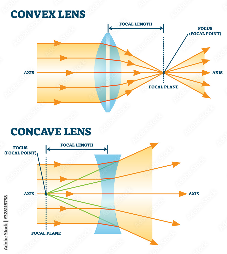 Slika na platnu Convex and concave lens, vector illustration diagrams