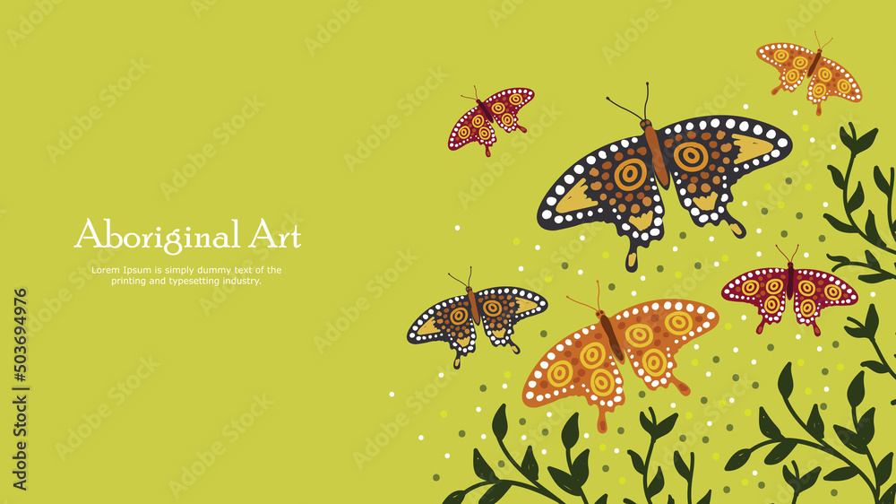 Slika na platnu Aboriginal banner background with butterfly