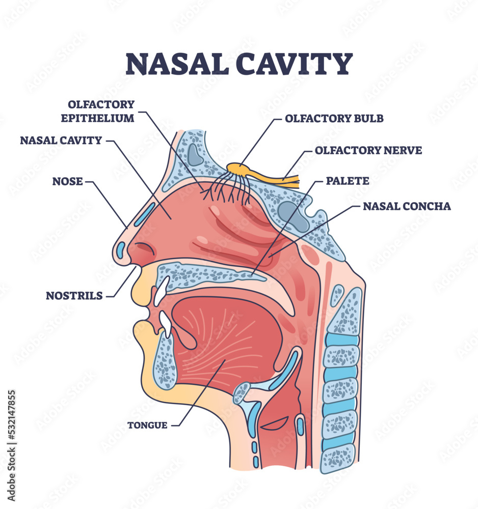 Slika na platnu Nasal cavity anatomy with medical nose parts description outline diagram