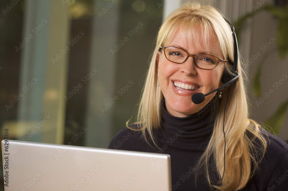Slika na platnu Attractive Businesswoman with Phone Headset