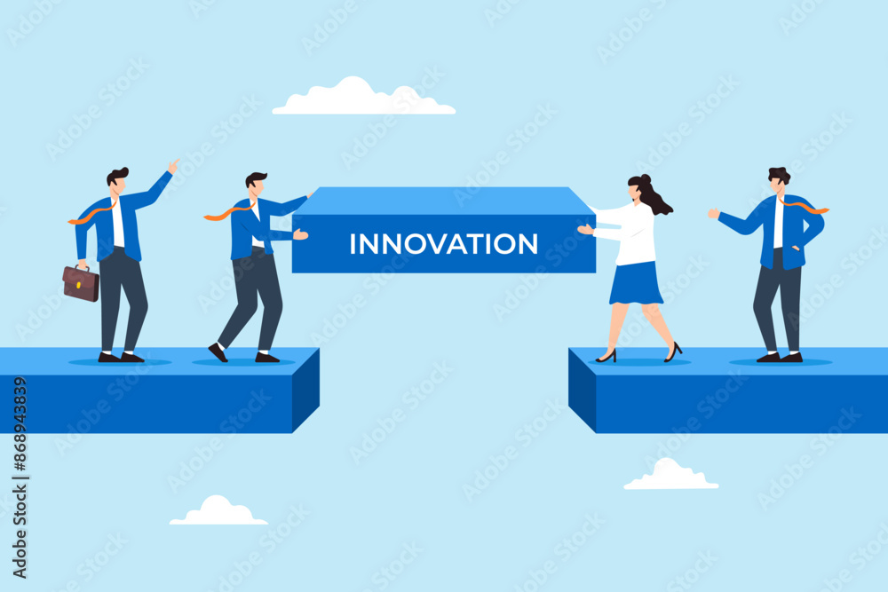 Slika na platnu Business team constructing bridge over gap labeled Innovation concept change ada